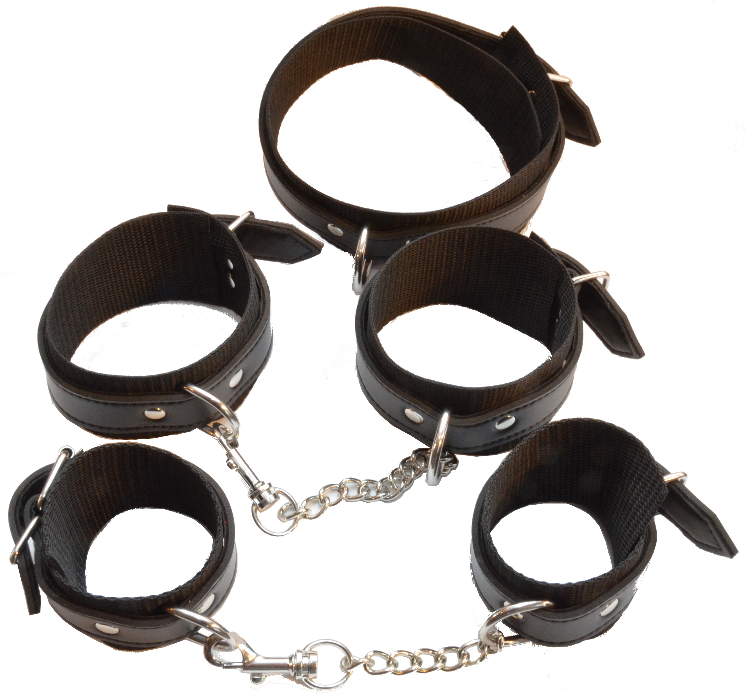 Swedish Dreams – Real leather and nylon 5 pcs Bondage Restraint Kit, Wrist Cuffs Ankle Cuffs Collar Handcuffs Belt Bracelet Cuff Metal